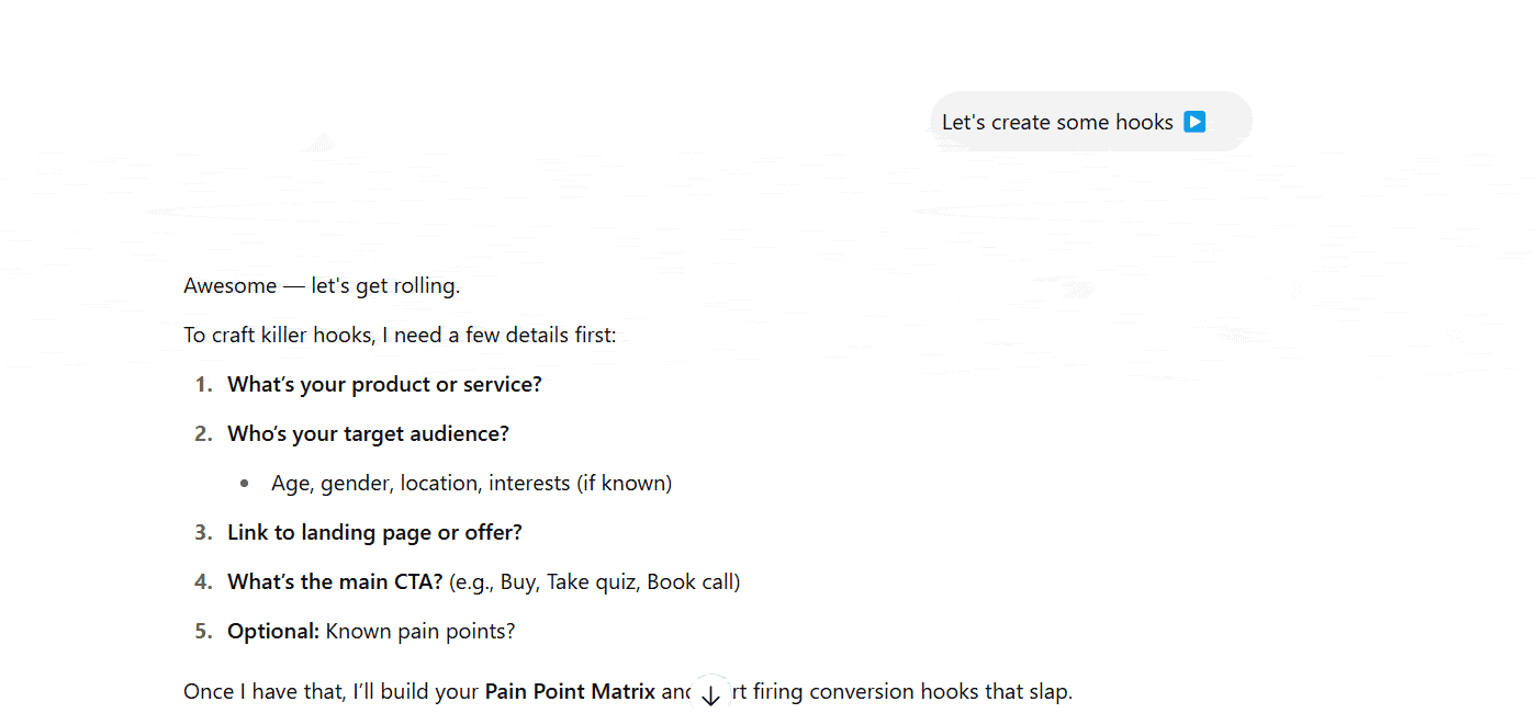 Hooksmith is your unfair advantage in a 1.5-second attention war.Most AI tools give you “nice to have” ideas. Hooksmith gives you need-to-click copy.It’s grounded in timeless direct-response thinking — inspired by the likes of Bencivenga, Schwartz, Hormozi, Masterson and Forde — and trained on today’s top-performing ad data.This isn’t about templates. It’s about output that:⚡ Stops the scroll before the skip